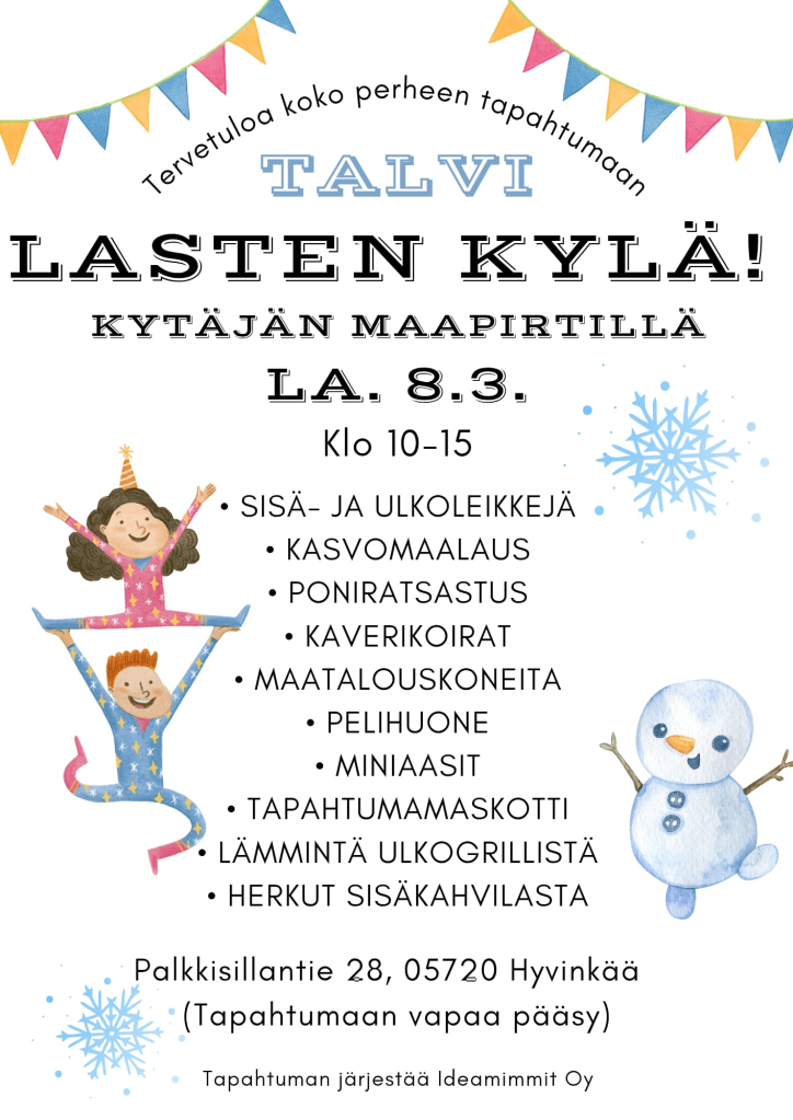 8.3.2025 Lasten Kylä! – koko perheen talvitapahtuma (Järjestäjä: Ideamimmit Oy)