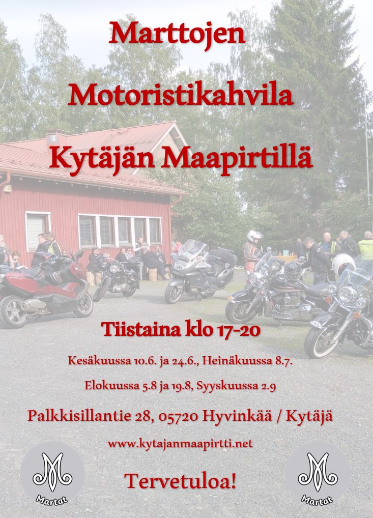 # Tämän kesän aikana pidetiin kerran kuukaudessa Maapirtillä marttojen Motorisit kahvila. Se oli hyvin suosittu! Ensi vuonna uudestaan!