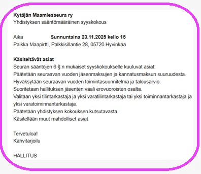 # Maamiesseura piti syyskokous, uudet jäsenent ja hallitusjäsenet hyväksitty – sukupolvenvaihto suunniteltu